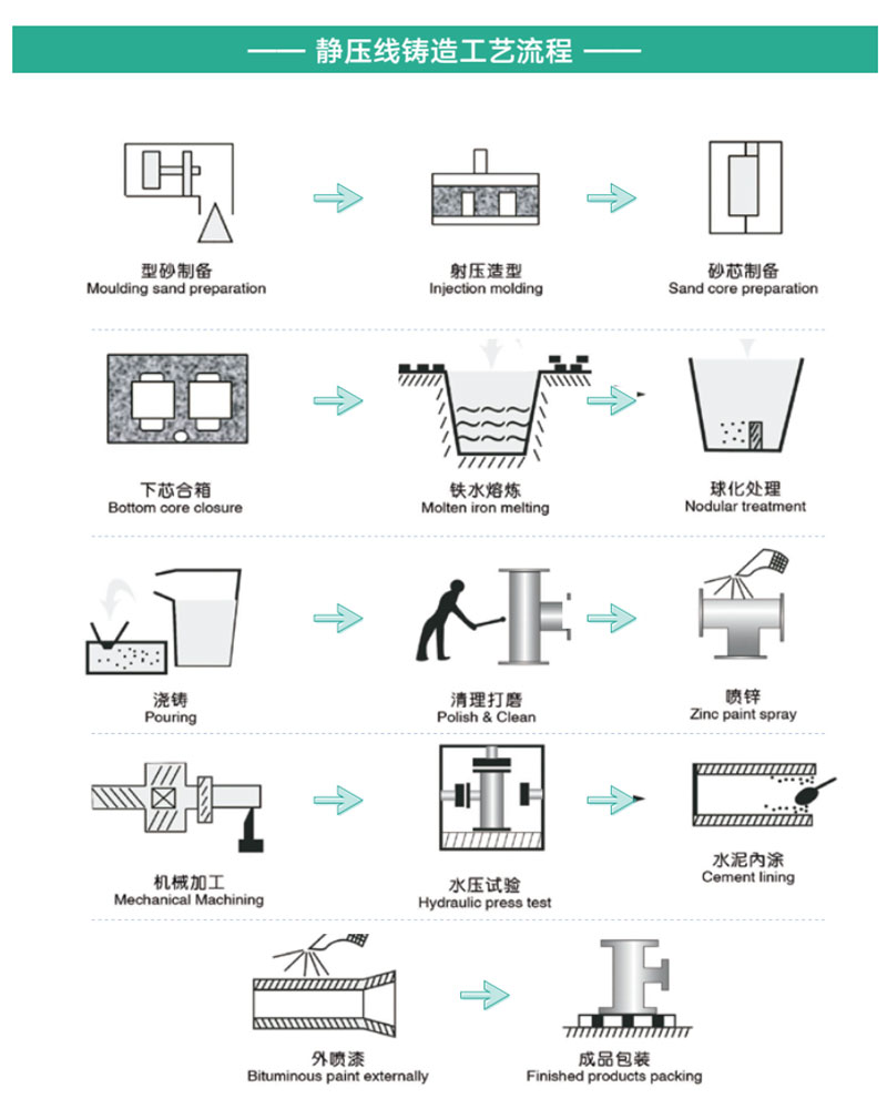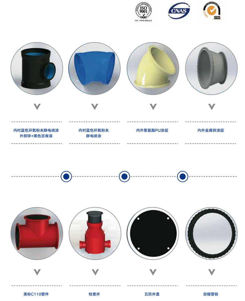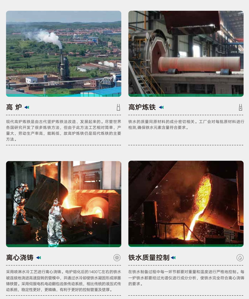 球墨鑄鐵管是指鐵水經(jīng)添加球化劑后,經(jīng)過(guò)離心球墨鑄鐵機(jī)高速離心鑄造成的管材。球墨鑄鐵管中石墨是以球狀形態(tài)存在的,克服了片狀石墨對(duì)鐵基體連續(xù)性的阻止作用,使鐵具有了卓越的可延性、柔韌性和抗沖擊性,因而材料本身的機(jī)械性能得到了較好改善,具有鐵的本質(zhì)、鋼的性能。